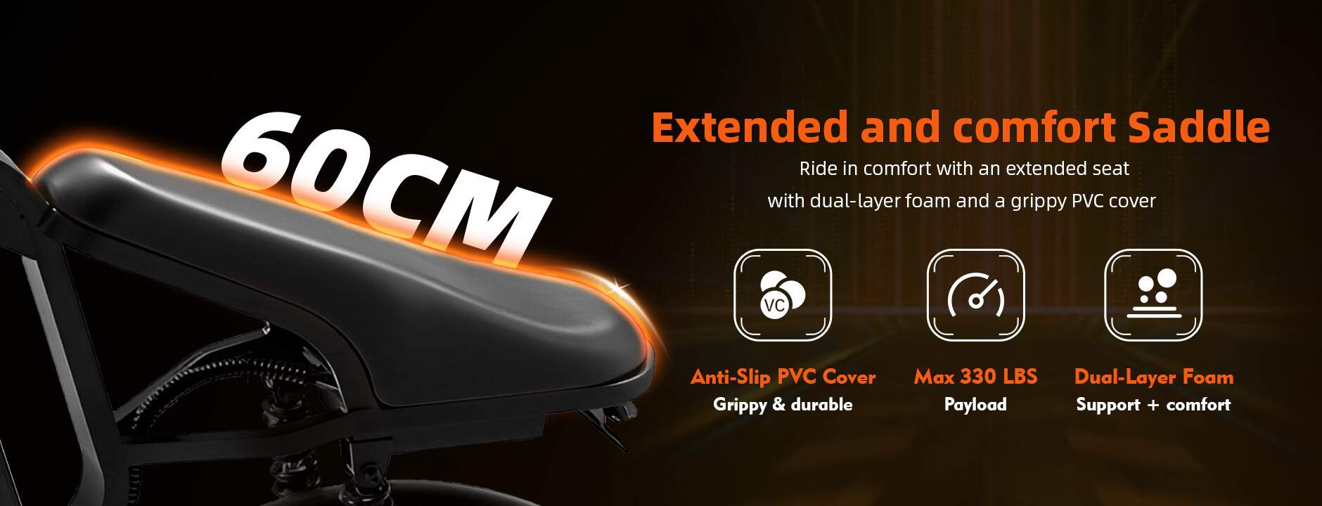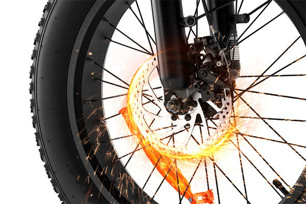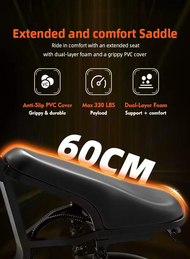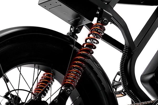 A full-suspension setup pairs a dual spring shock absorbers rear system with a hydraulic front fork to absorb every bump and dip with ease. Glide over rough roads and trails with a buttery-smooth feel, staying comfortable and in full control from start to finish.