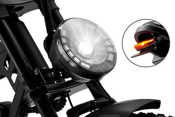 Integrated headlight, rear brake light, and left/right turn signals clearly communicate every move, improving visibility and safety in traffic.
