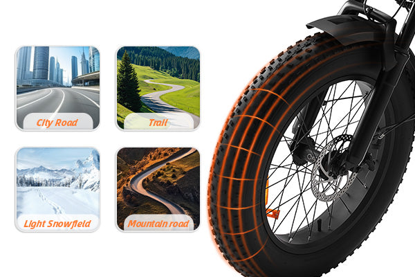 The 20x4.0-inch puncture-resistant tires are designed for outdoor adventures,offering enhanced comfort and durability by minimizing vibrations and preventing flats